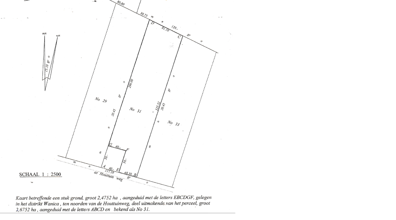 - Eigendom Wayamboweg 14ha. Iets voorbij 5e rijweg aan de rechterzijde van de weg met een woning. Landbouw terrein. Vraagprijs €270.000,=.