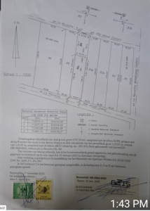 - Eigendom Kierti Tikaiweg-Tout Lui Fautweg. 2 percelen van 600m2 naast elkaar. Verharde weg, alle nutsvoorzieningen, bewoond gebied. Prijs €32.500,= p. stuk.