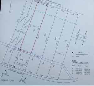- Eigendom 8463 m2 te Welgelegen Coronie. Zeer goed langs asfalt weg gelegen perceel. Vraagprijs €45.000,=.