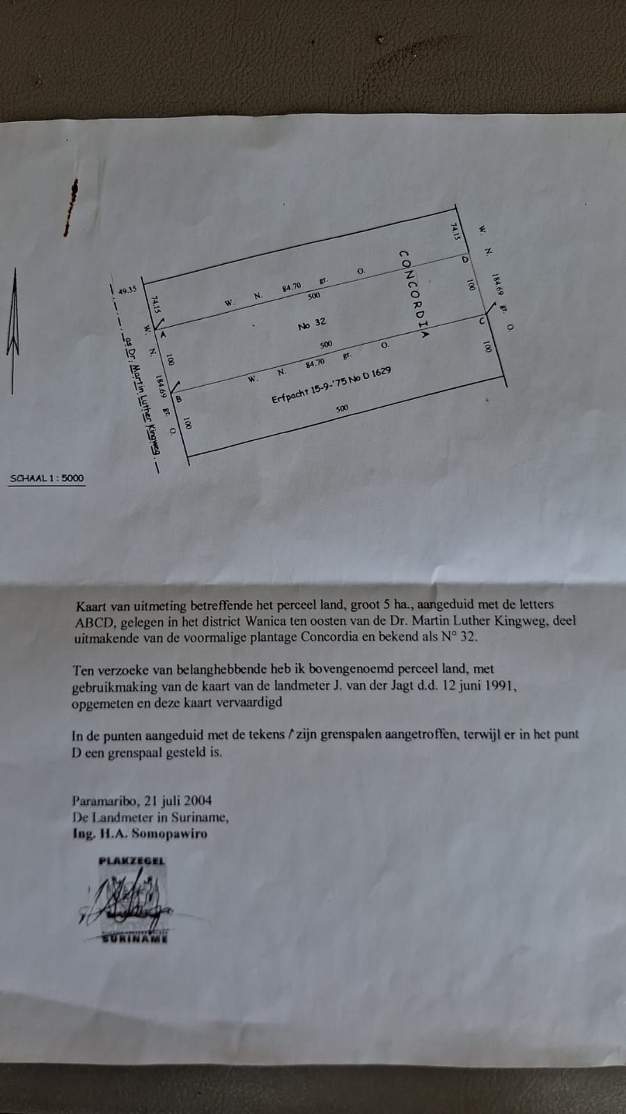 - Eigendom, Vierkinderenweg – Barsati Haripersadweg. Aantrekkelijk perceel met woning te koop. Het terrein beslaat 4233 m2 met een ruime woning (opp 350 m2). Kamers 5 (waarvan 1 masterroom), 2e bad/toilet, grote woonkamer, voor- en achter balkon, achter keuken. Voorzien van dievenijzer. Eigenweg naar de woning. Achter de woning nog circa 3000 m2 bootperceel voor mogelijke verkaveling. Ontdek de mogelijkheden en geniet van het ruime perceel. Vraagprijs €125.000,=